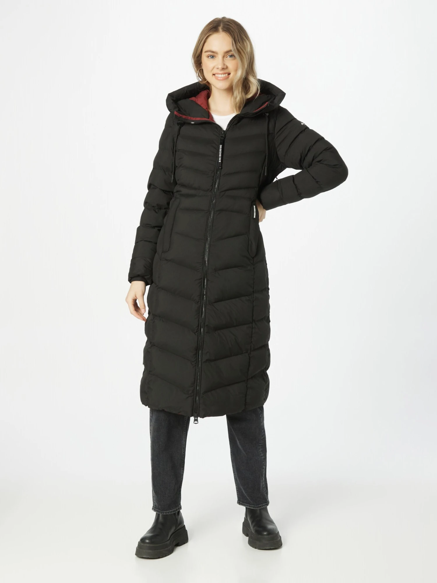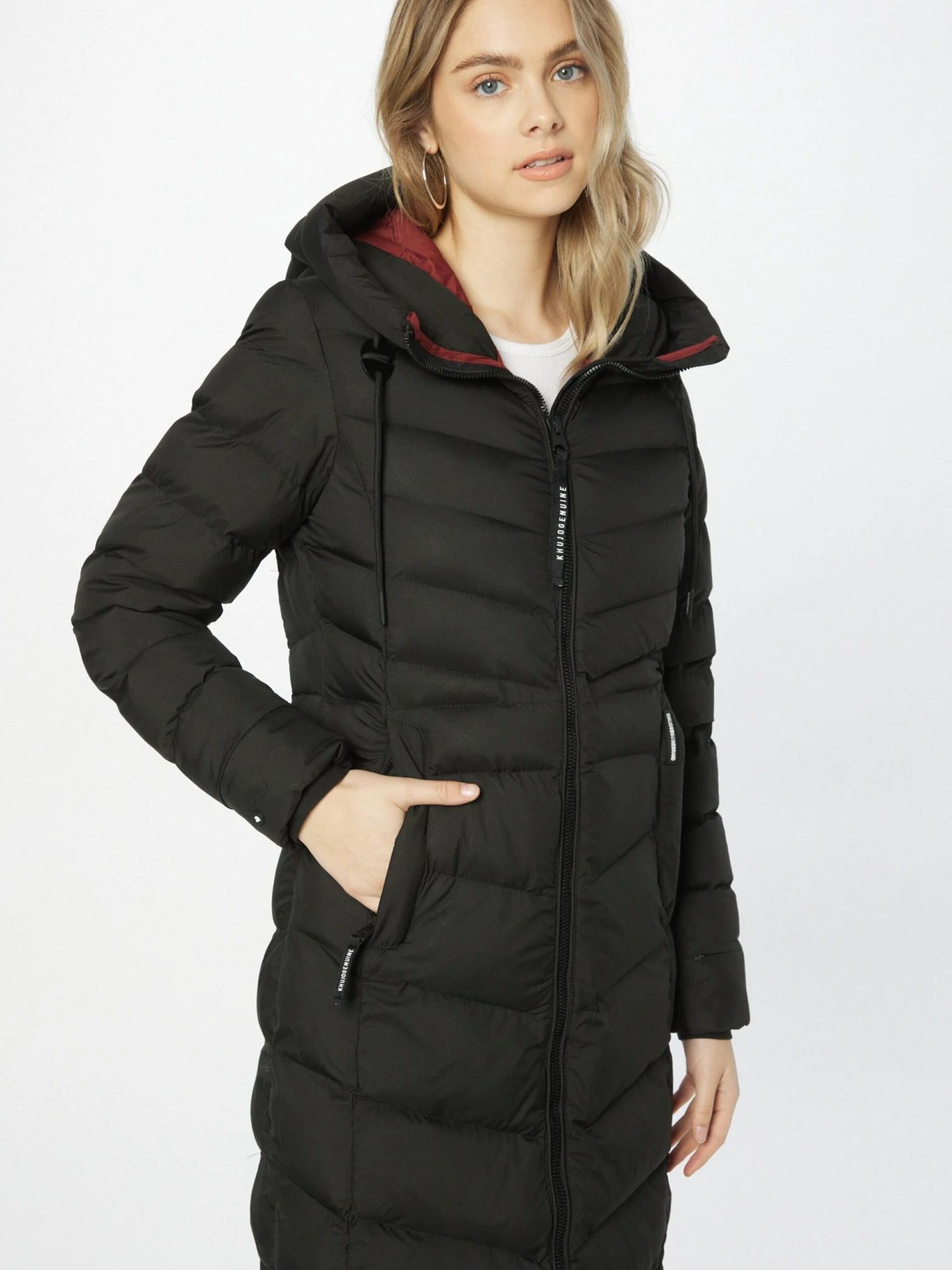 Couleur unieVeste matelasséeDoudoune matelasséeCapuche doubléeCapuche avec cordon de serrageFermeture éclair bidirectionnellePoches latérales avec fermeture éclairEtiquette patch / étiquette flagPiqûres de finitionsTissu lisseDoublure chaudeFermeture à glissière